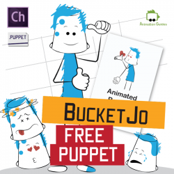BucketJo – free stick figure puppet for Adobe Character Animator. This cartoon puppet can follow your head movements, lip-sync your voice, walk, gesture and perform premade animations.